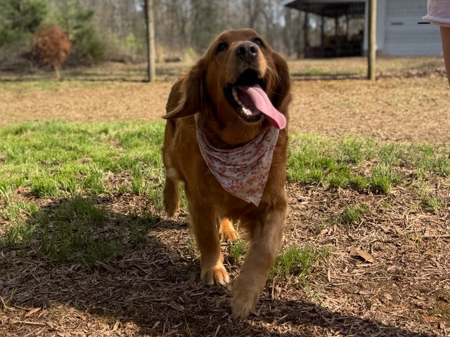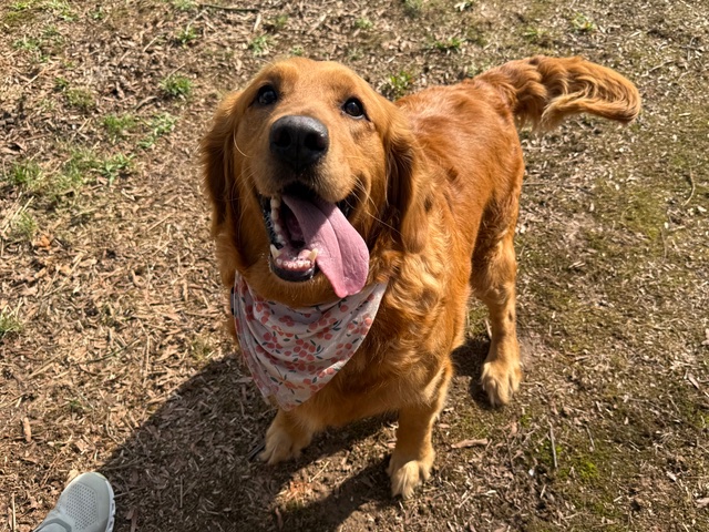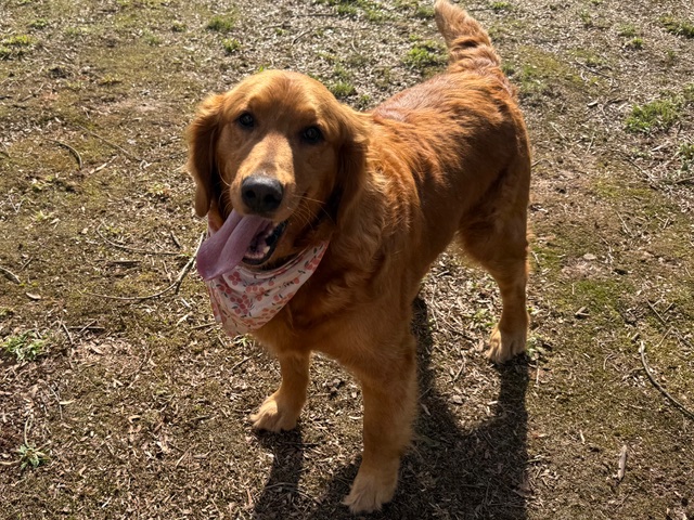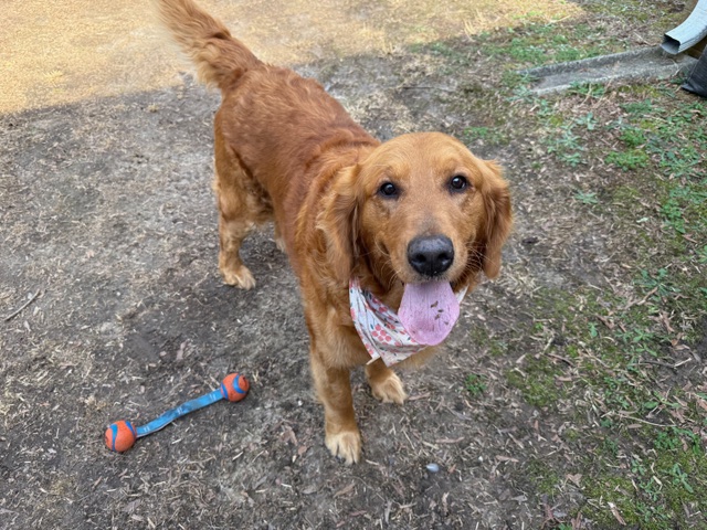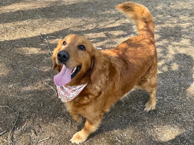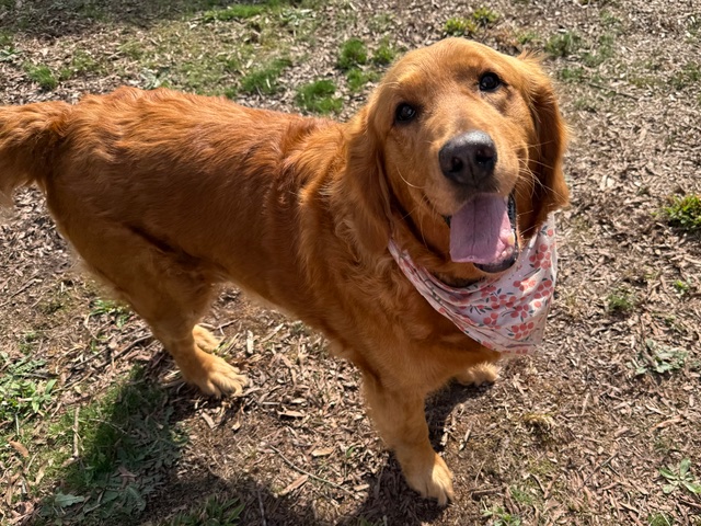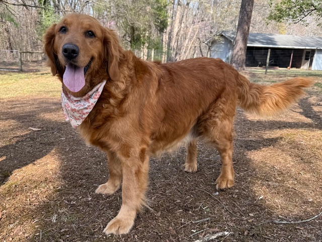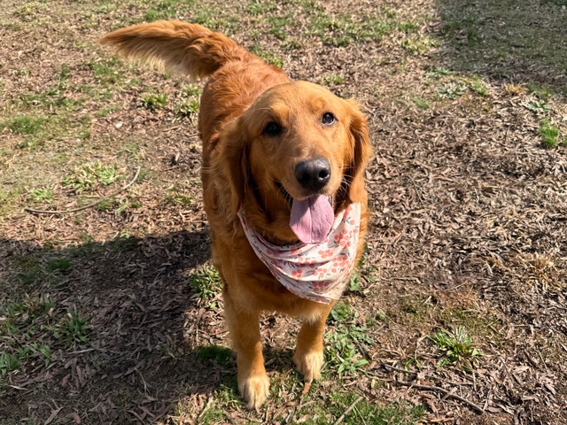 Hello! I’m easy-going Angel and I’m very pleased to meet you. I roll with the punches and am a generally happy girl with a traditional Golden Retriever personality. I’m 5 years old and have recently dropped from 111 pounds to 98. I’m still a big girl but I’m working hard to reach my goal weight of 75-80 pounds.