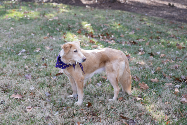 Check me out! I’m Megan and even though I’m 10 years old, Foster Dad says I have the energy of a three year old. I run and play with the best of them! I’m on the smallish side for a golden mix, just 50 pounds.